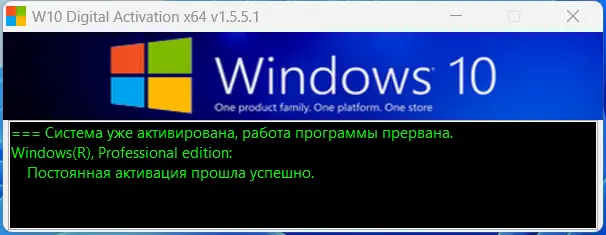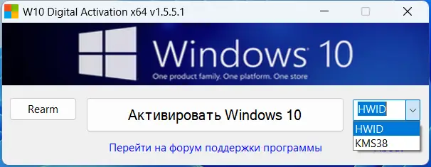 W10 Digital Activation — это инструмент от Ratiborus, предназначенный для активации Windows 10 с помощью цифровой лицензии. Программа позволяет легко и быстро активировать операционную систему, обеспечивая легальный статус системы без необходимости ввода ключа вручную.
