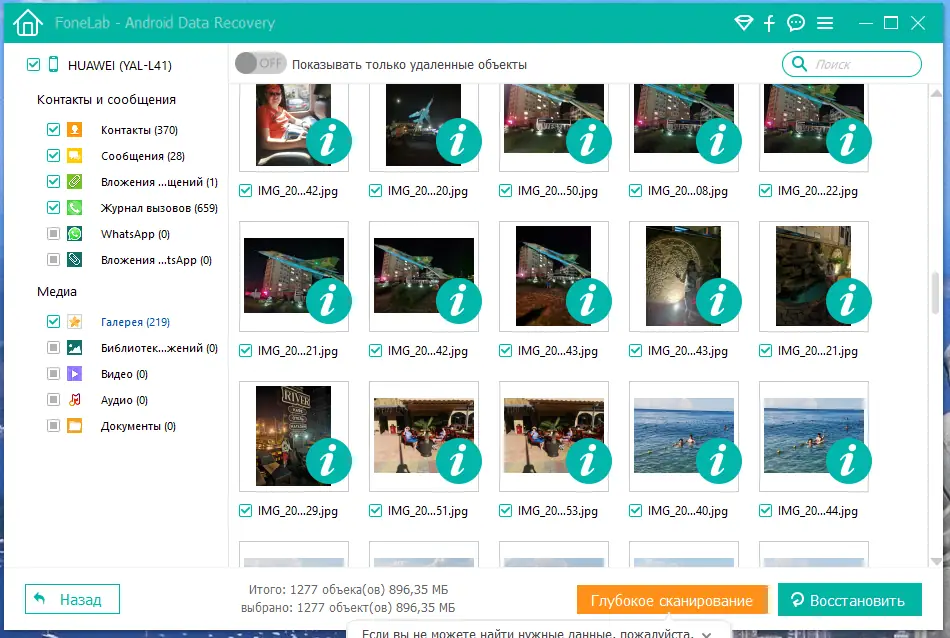 - Восстановление удалённых сообщений, контактов, журналов звонков из Android-устройств.