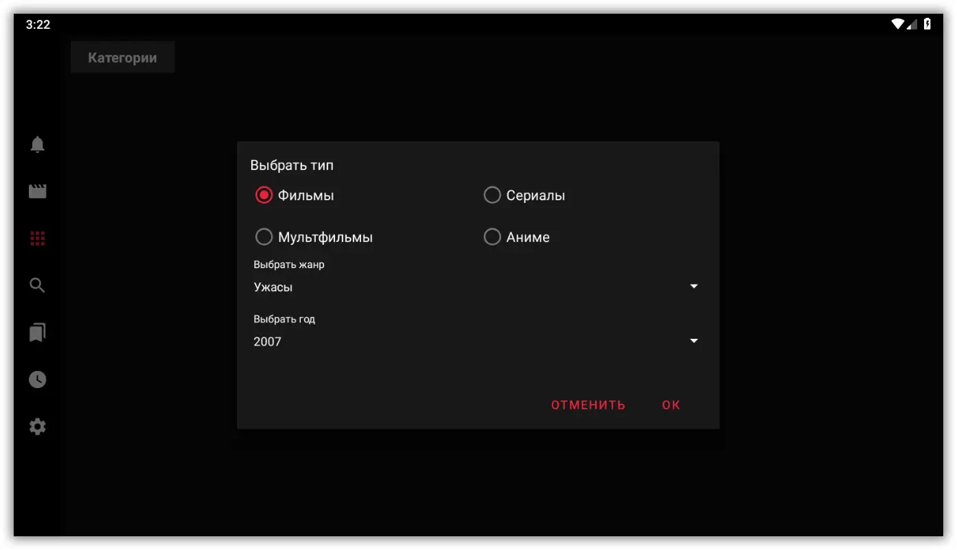 - Категории по жанрам, а также поиск по названию для быстрого нахождения нужного контента.