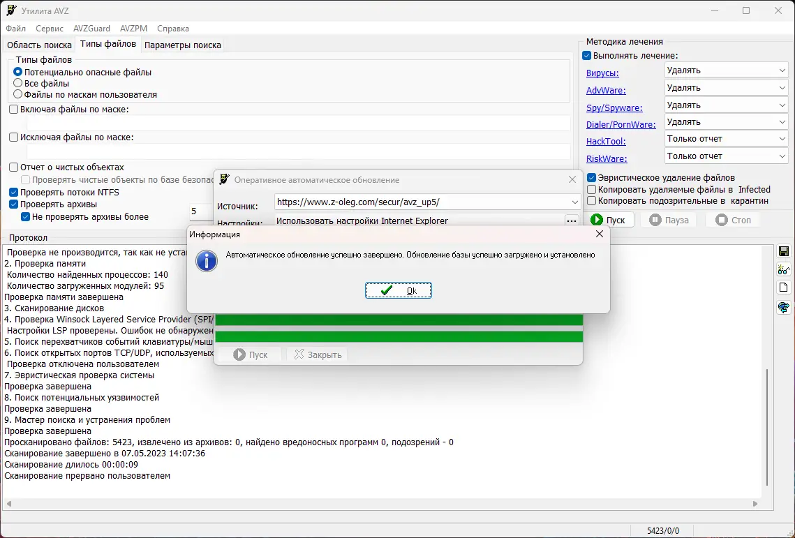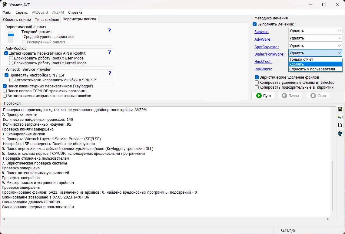 - Защита важных приложений системой AVZGuard и мониторинг процессов драйверов через драйверы AVZPM, BootCleaner.
