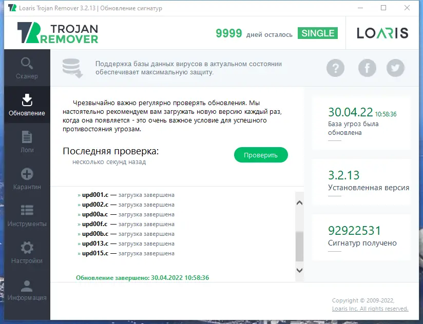 Обратите внимание, что для полноценного использования рекомендуется проверять наличие обновлений и использовать свежие сигнатуры для обнаружения новых угроз.