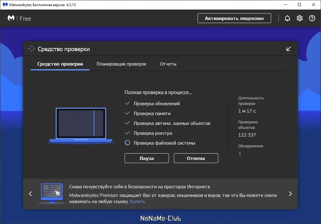 Malwarebytes — это мощная антивредоносная программа, которая быстро обнаруживает и удаляет различные виды вредоносного ПО, обеспечивая надежную защиту вашего компьютера.