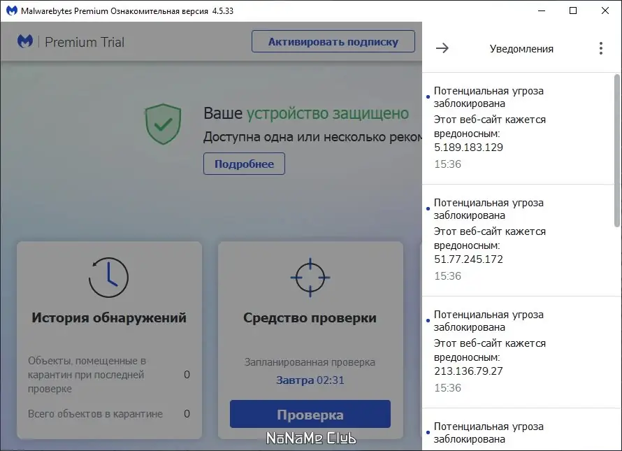 Malwarebytes представляет собой полноценную защиту для вашего устройства, использующую актуальные технологии обнаружения и удаления вредоносных программ. Она позволяет проверять каждое системное действие, блокировать вредоносные процессы и помещать потенциальные угрозы в карантин, а также восстанавливать их по необходимости. Программа работает на базе динамической технологии Malwarebytes Chameleon, что гарантирует её запуск даже при блокировке со стороны вредоносного ПО. В состав входит множество дополнительных утилит для ручного удаления угроз и расширенная поддержка языков. Всё это делает Malwarebytes незаменимым инструментом для обеспечения полноценной и постоянной защиты компьютера.