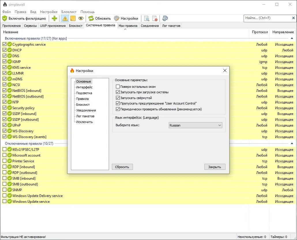 Обратите внимание, при использовании портативной версии важно правильно настроить файл simplewall.ini для корректной работы программы.