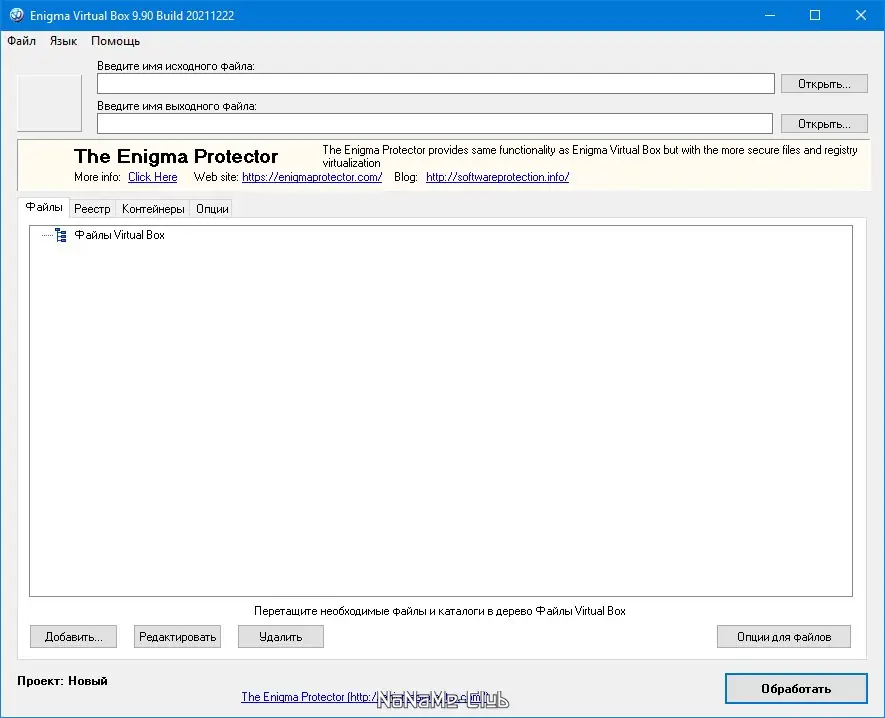 - Запустить Enigma Virtual Box и начать виртуализировать выбранные файлы или создавать портативные приложения.