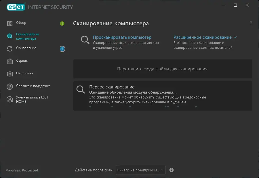 - Обновите базу данных и настройте необходимые параметры защиты согласно личным предпочтениям