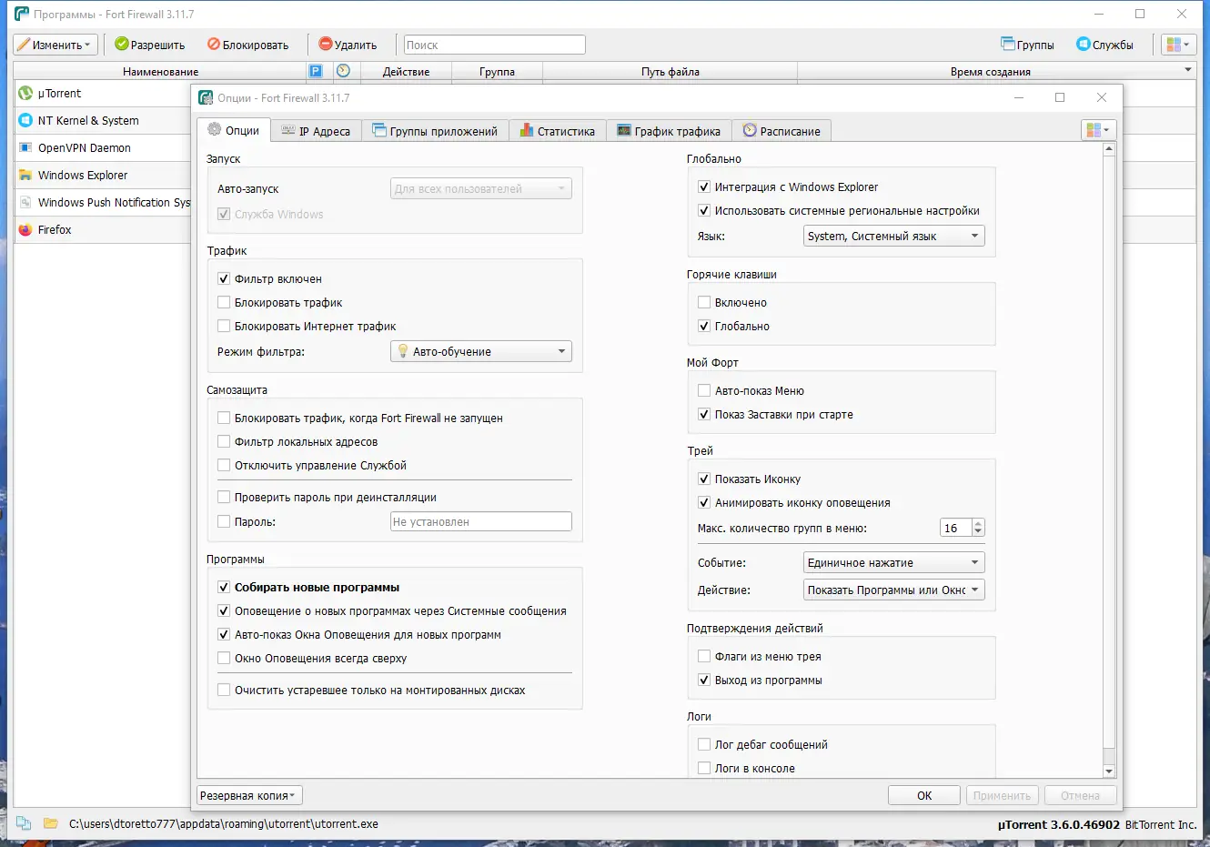 Это современный брандмауэр, основанный на Windows Filtering Platform, который сочетает в себе легкую настройку и мощный функционал. Благодаря Fort Firewall вы можете запретить или разрешить доступ в интернет для отдельных приложений, задать ограничения по скорости соединения или заблокировать трафик по IP-адресам. Программа идеально подходит для пользователей, желающих контролировать нагрузку и обеспечивать безопасность своего ПК без сложных настроек и дополнительных затрат.