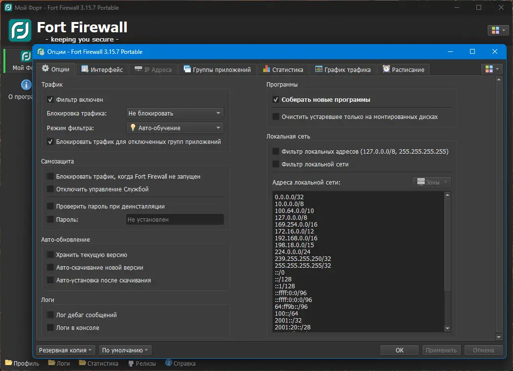 Fort Firewall — это легкий и бесплатный брандмауэр для операционной системы Windows, предназначенный для управления интернет- и сетевым трафиком. Благодаря удобному интерфейсу, вы сможете легко блокировать приложения, ограничивать скорость соединений, а также настраивать правила фильтрации по IP-адресам. Программа интегрируется с системой и сосредоточена на обеспечении безопасности и стабильности работы в различных версиях Windows, начиная с Windows 7 и до Windows 11. В отличие от простых аналогов, она использует собственный драйвер ядра на базе WFP, что повышает эффективность и надежность фильтрации.