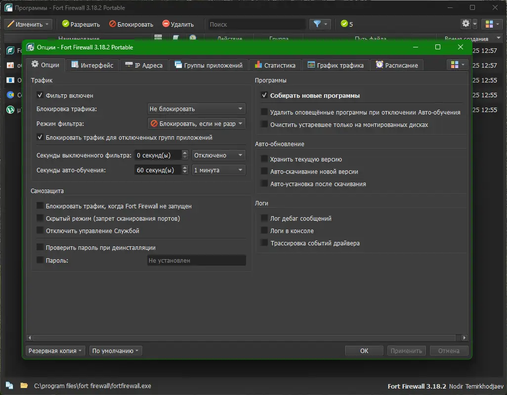 Дополнительную информацию можно получить прямо в интерфейсе программы, где доступны функции графика, статистики трафика и индивидуальных правил. Fort Firewall работает в версиях Windows 7 SP1, Windows 8/8.1, Windows 10 и Windows 11, что делает его универсальным инструментом для пользователей разных систем.