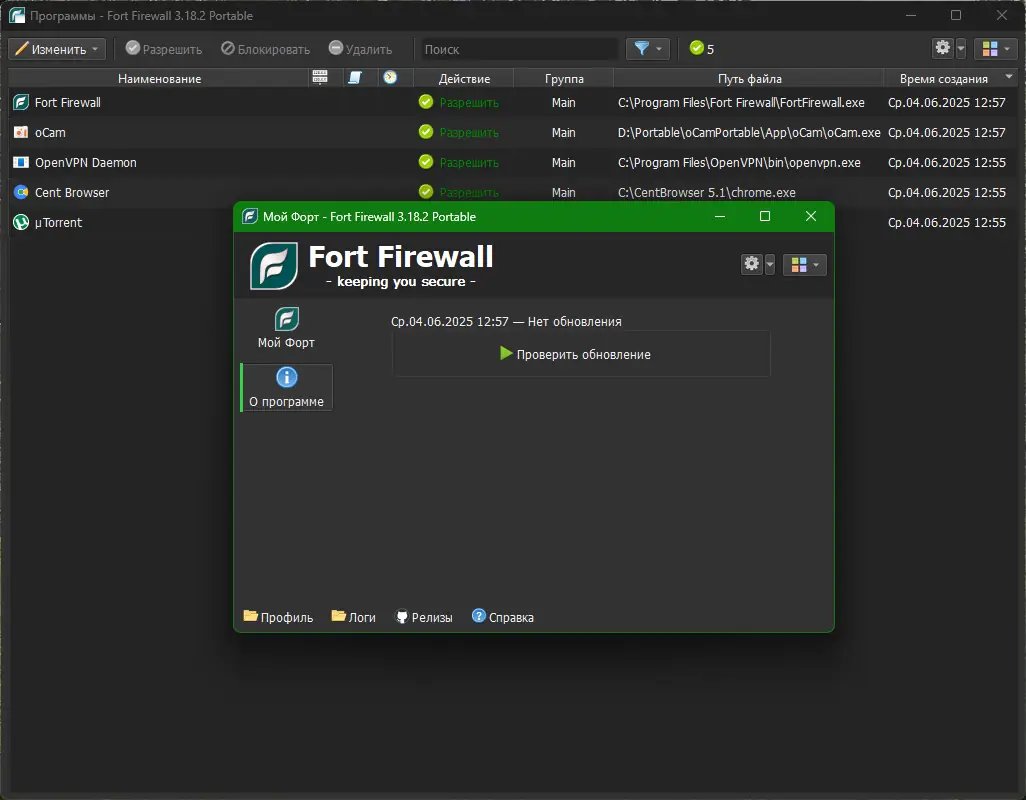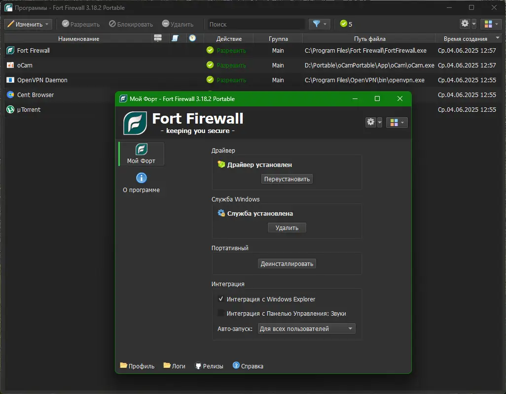 Fort Firewall – это простой и бесплатный брандмауэр для Windows, позволяющий легко управлять сетевым и интернет трафиком. С его помощью можно блокировать доступ приложений к интернету, ограничивать скорость соединения и настраивать правила фильтрации по IP-адресам. Решение отлично подходит для тех, кто ценит безопасность и хочет иметь полный контроль над сетевыми соединениями.