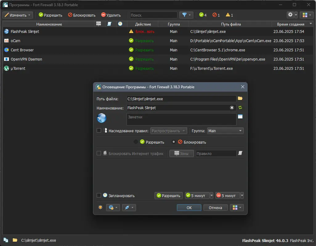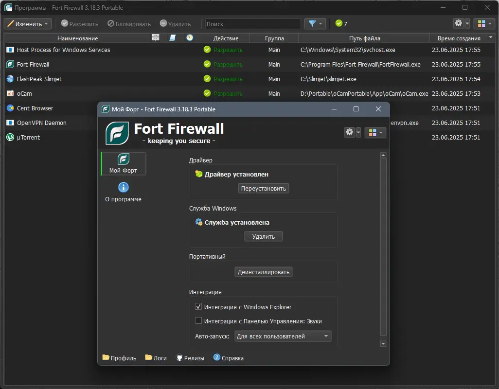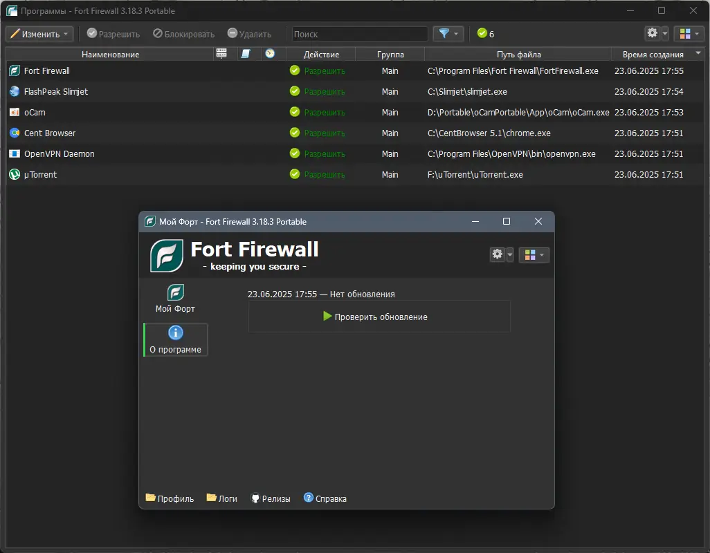 Fort Firewall — это простой и бесплатный брандмауэр для Windows, который позволяет контролировать сетевой и интернет трафик, блокировать доступ к интернету для приложений и устанавливать правила фильтрации по IP-адресам.