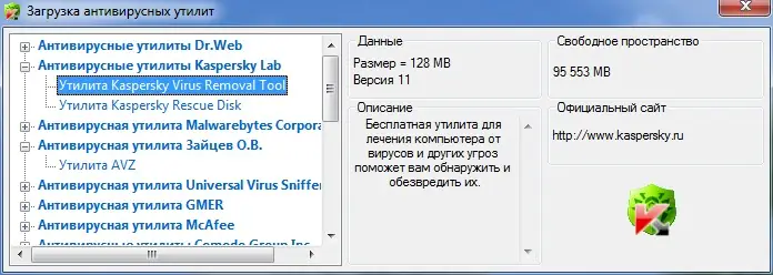 - Автоматическая загрузка утилит и LiveCD от ведущих антивирусных производителей.