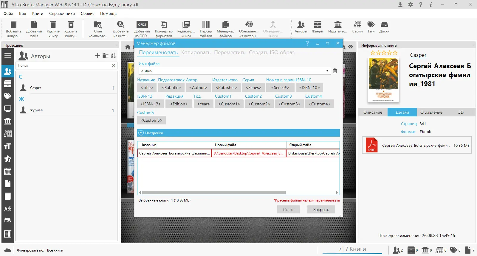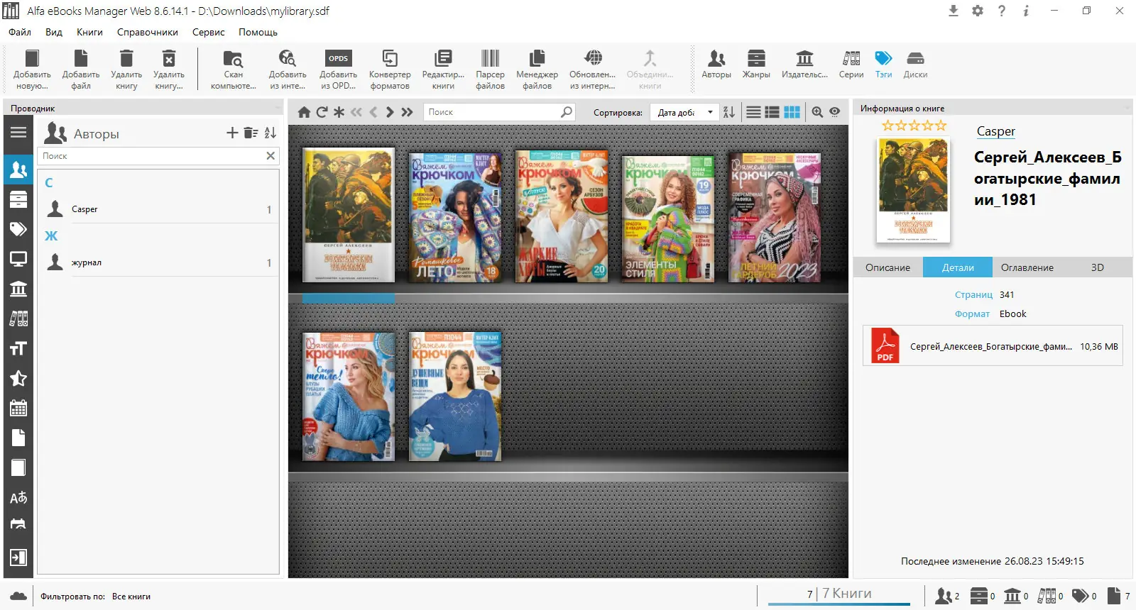 Alfa eBooks Manager — это мощное и удобное решение для организации электронной и бумажной библиотек. Программа предназначена для любителей книг, студентов, ученых и сотрудников бизнес-библиотек, позволяя создать единую систему хранения и управления всеми видами литературы на вашем компьютере. Она способна автоматически сканировать весь диск и добавлять найденные книги в базу данных, что значительно ускоряет процесс пополнения библиотеки. Встроенные инструменты позволяют редактировать карточки книг, присваивать теги, проводить сортировку, конвертировать форматы, читать с помощью встроенного Alfa Reader или другой ассоциированной программы, а также прослушивать аудиокниги. Особенностью программы является гибкая настройка, что делает её универсальным инструментом для повышения эффективности работы с большими коллекциями литературы.