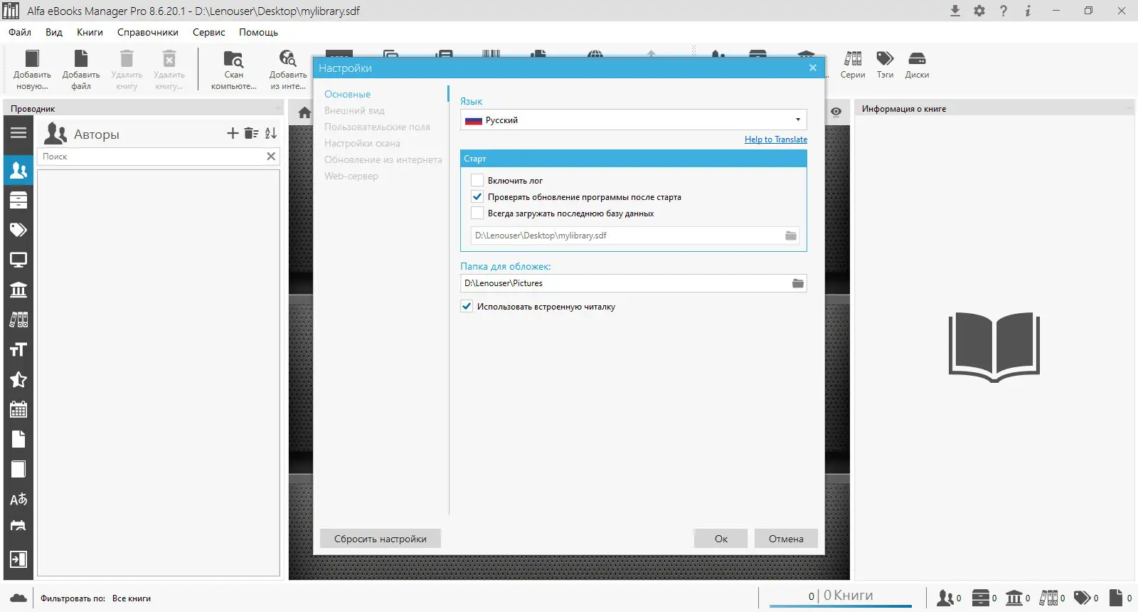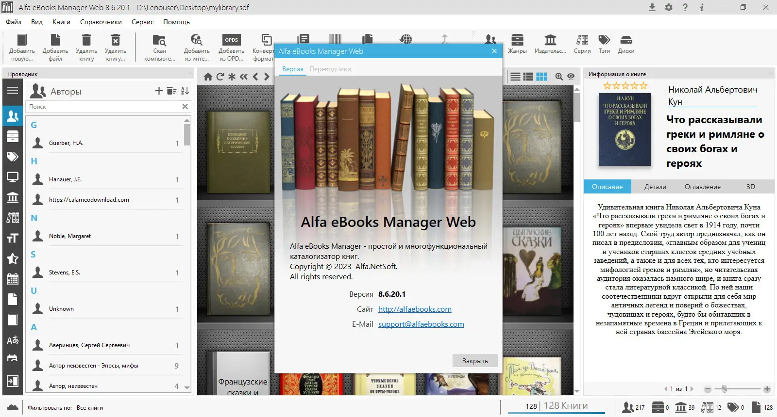 Alfa eBooks Manager является одной из самых популярных программ для ведения электронной библиотеки. Она позволяет не только создавать каталоги электронных и бумажных книг, но и автоматизированно сканировать систему для поиска и добавления новых изданий. Пользователь может редактировать карточки книг, добавлять обложки, жанры, авторов и дополнительные сведения. Встроенный конвертер поддерживает работу с основными форматами (PDF, MOBI, EPUB, FB2 и другие), а также позволяет экспортировать и импортировать данные в различных форматах. Поддержка работы с интернет-источниками и интеграция с такими сайтами, как Литрес и Books.ru, обеспечивают автоматическое обновление информации о книгах, в том числе с обложками и метаданными.