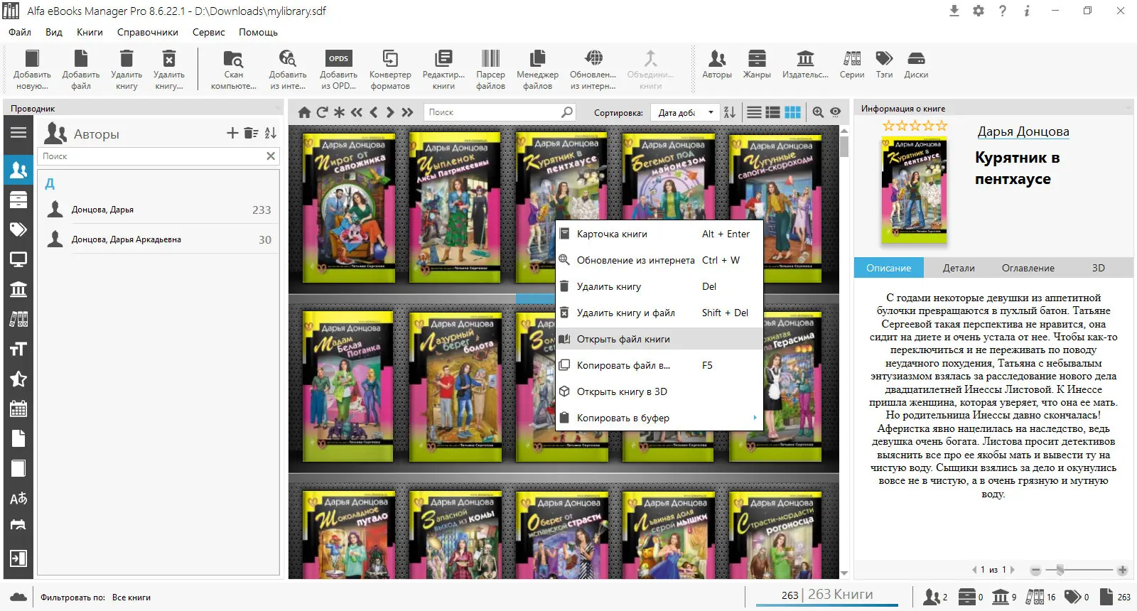 Alfa eBooks Manager сочетает множество полезных функций для владельцев больших библиотек, обеспечивая удобство и скорость работы.