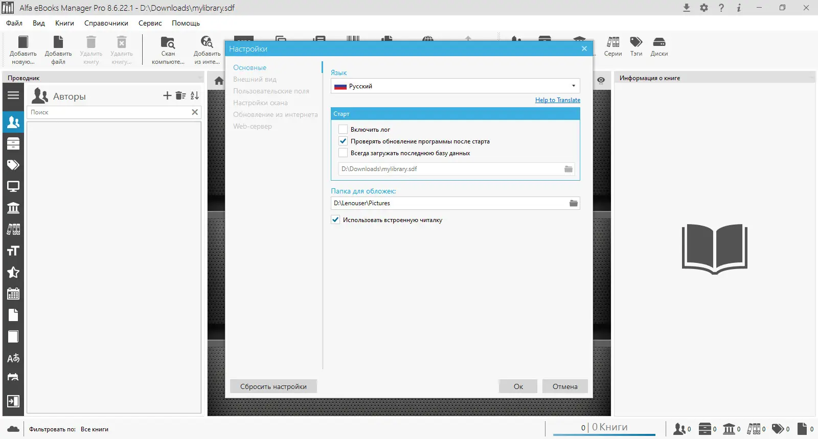 - Работа с базами данных до 20 тысяч книг и более с возможностью создания нескольких баз