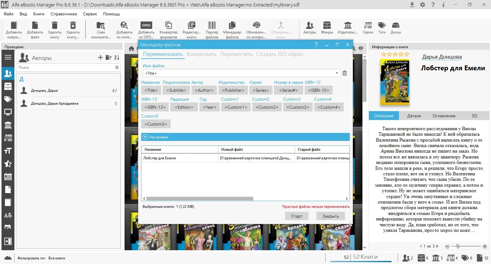 Alfa eBooks Manager — это профессиональное решение для организации личной библиотеки, которое объединяет бумажные и электронные книги. Эта программа идеально подходит для любителей чтения, студентов, ученых и сотрудников бизнес-библиотек, позволяя создать удобную и структурированную коллекцию книг на вашем компьютере.