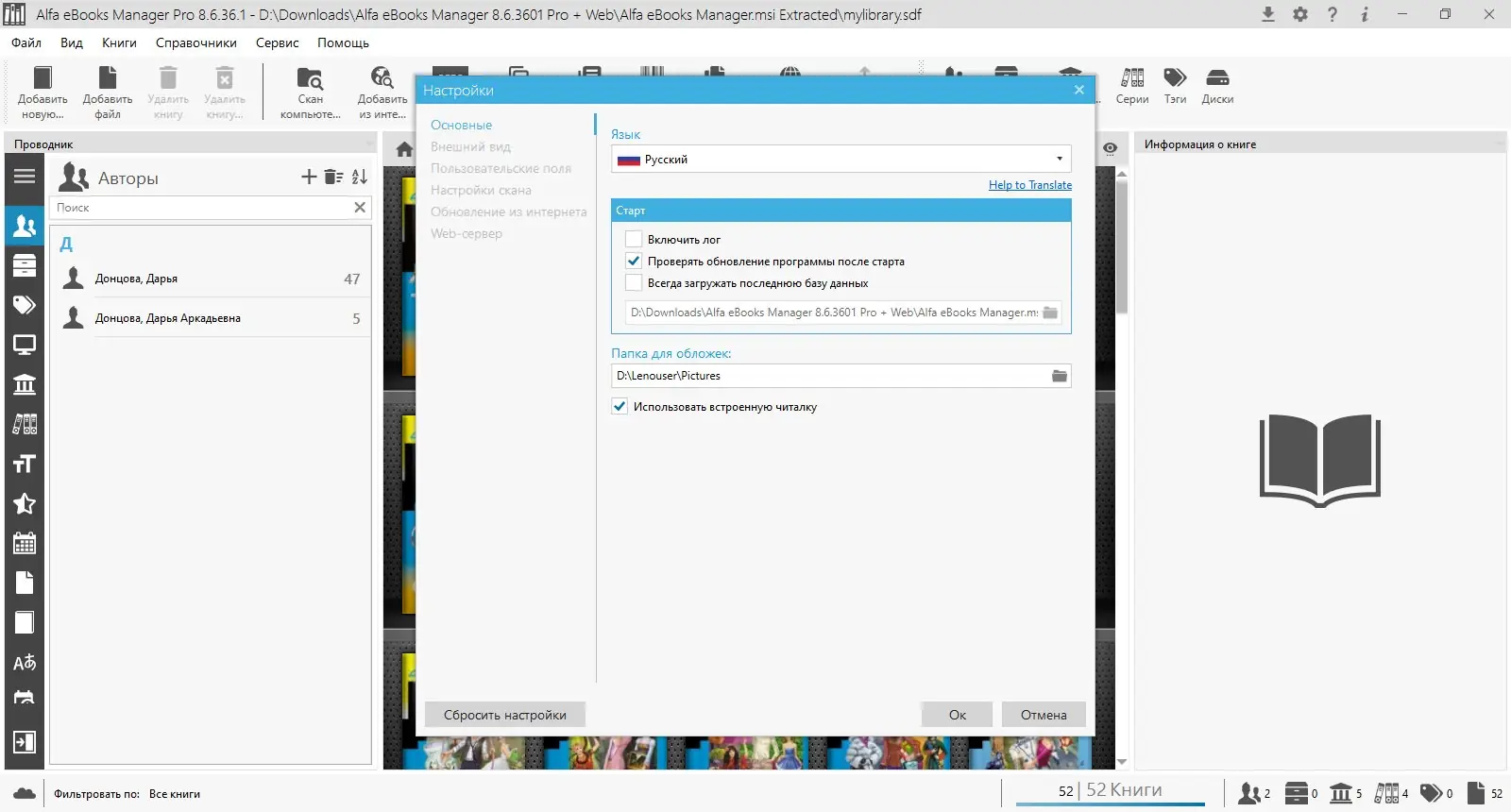 Alfa eBooks Manager — это мощный и удобный инструмент для систематизации вашей библиотеки, который поможет вам сохранить порядок и быстро находить нужные книги. Для пользователей, желающих максимально расширить функциональность, доступны версии PRO и Web, предоставляющие дополнительные возможности.