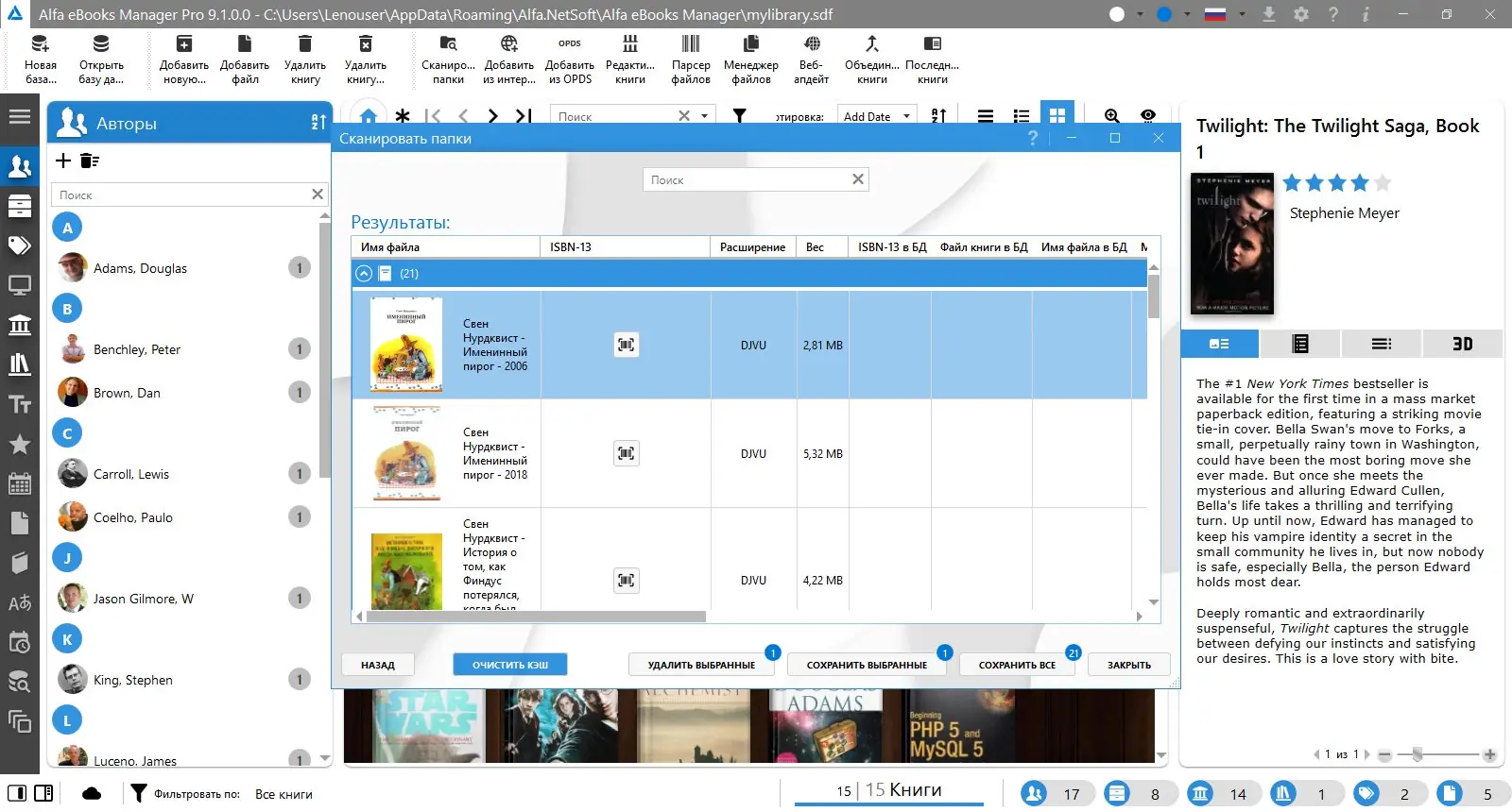 Alfa eBooks Manager — современная программа для организации и управления вашей электронной и бумажной библиотеки. Она подходит для любителей книг, студентов, ученых и владельцев бизнес-библиотек, обеспечивая комфортное хранение и упорядочивание ваших коллекций.