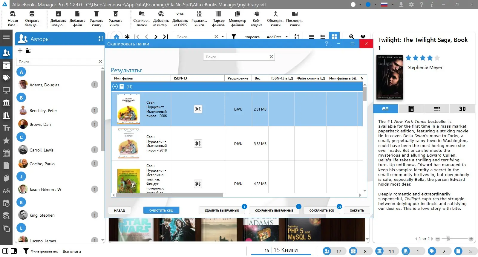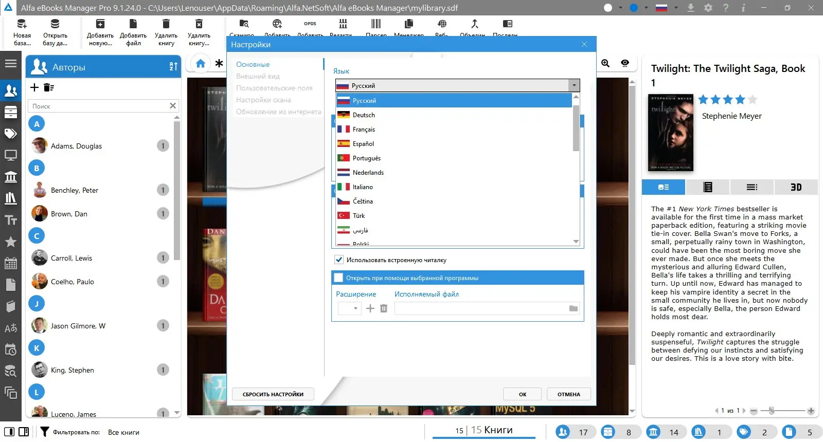Alfa eBooks Manager представляет собой мощное решение для организации книжных коллекций. Программа обладает широким набором функций, которые позволяют вести библиотеки различного масштаба эффективно и удобно.