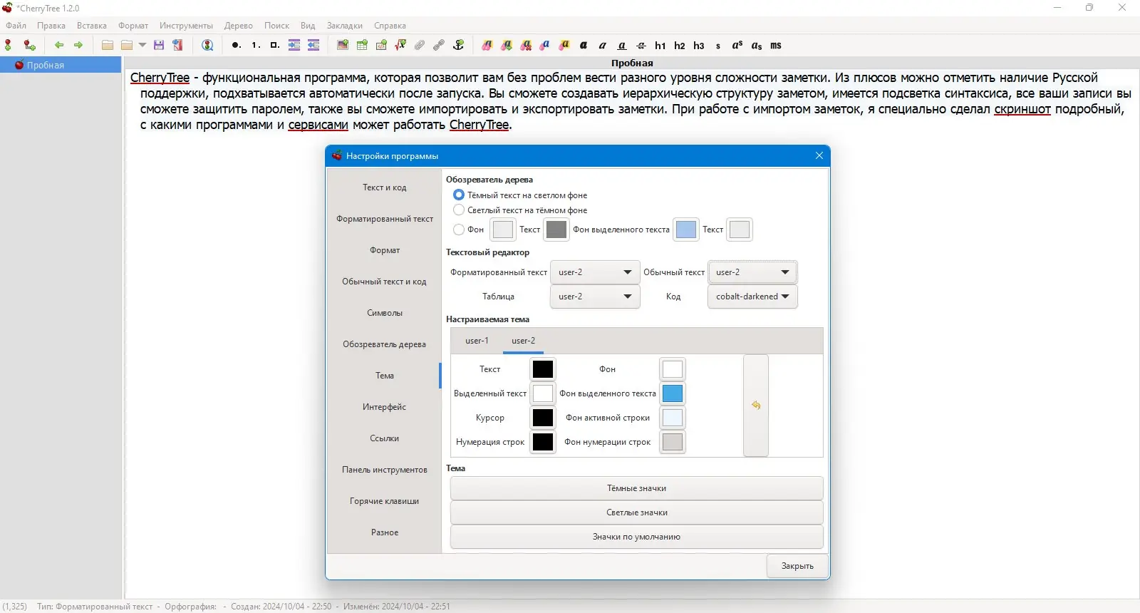 CherryTree — функциональное и удобное приложение, предназначенное для ведения заметок любой сложности. Поддерживает русскую локализацию и автоматическую запуск после установки, что значительно облегчает первый запуск. Благодаря иерархической структуре, вы можете структурировать свои записи, создавая вложенные заметки и легко находясь в потоке информации. В программе реализована подсветка синтаксиса, что удобно для разработчиков и тех, кто работает с кодом. Все записи можно защитить паролем для обеспечения конфиденциальности. Кроме того, доступна возможность импорта и экспорта заметок, а также интеграция с различными сервисами и программами. Также есть подробные инструкции и скриншоты по работе с импортом для более удобного освоения функций.