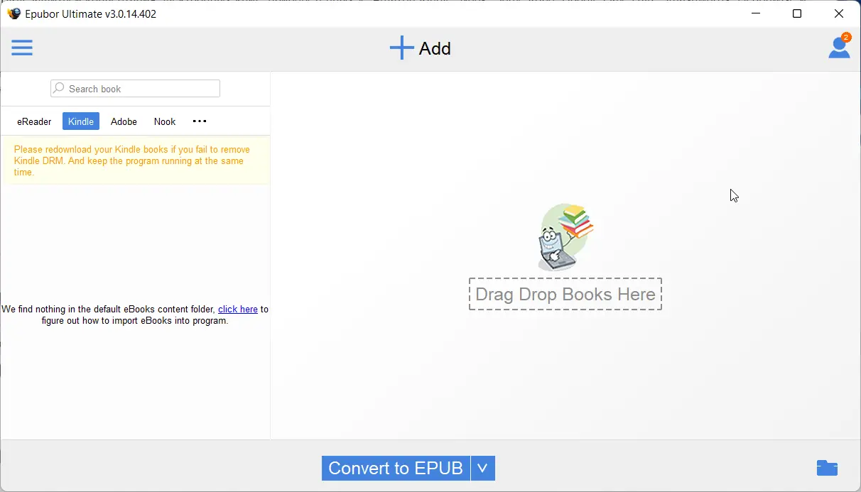 Программа Epubor Ultimate предназначена для снятия DRM защиты и конвертации электронных книг, приобретенных у популярных платформ таких как Amazon Kindle, Nook, Sony, Kobo, Google Play, Lulu, Smashwords и других. Обеспечивает легкое управление и преобразование книг в удобный формат для чтения на различных устройствах.