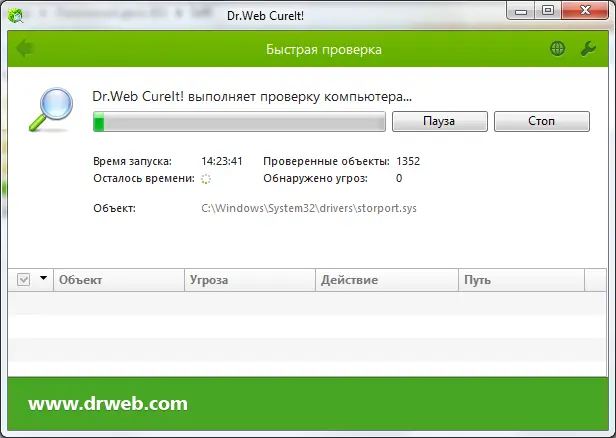 - Дождаться окончания проверки и ознакомиться с результатами.