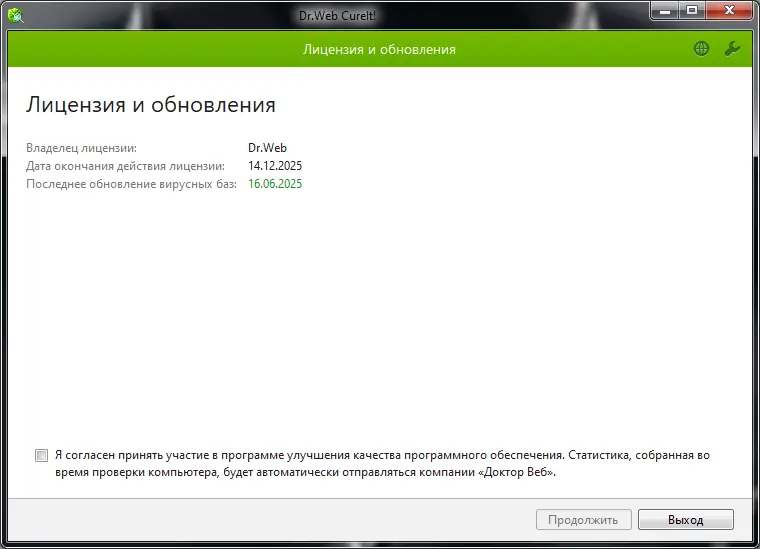 - При необходимости обновить вирусные базы, повторно скачать свежую версию программы, так как автоматическое обновление отсутствует.