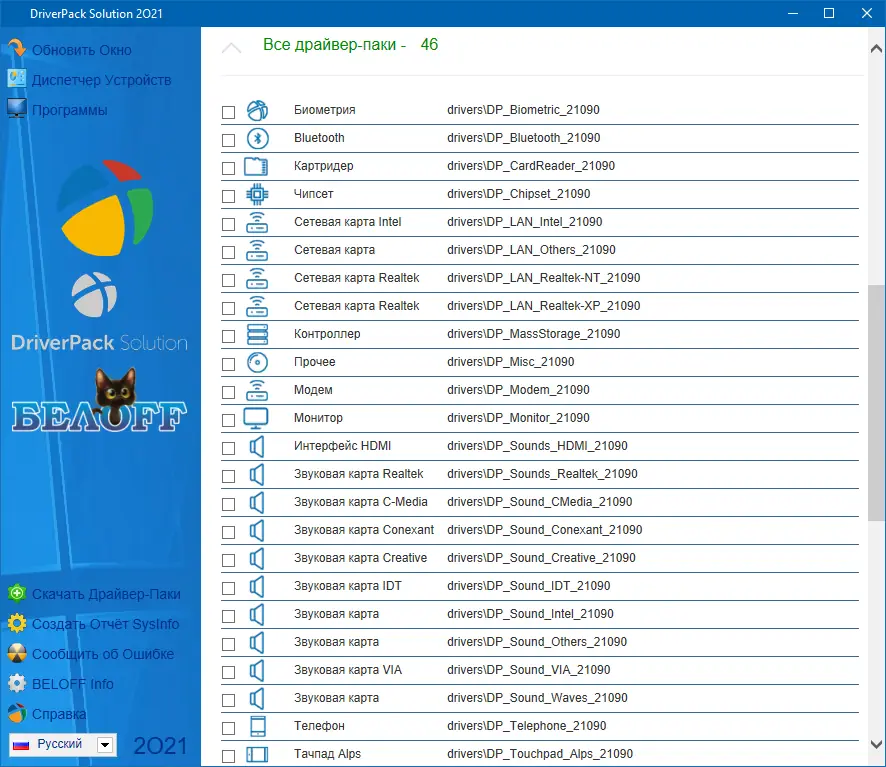 BELOFF — это сборник программ для автоматической установки драйверов в Windows x86 и x64 Bit. Он предназначен для ускорения и упрощения процесса обновления драйверов на компьютерах с системами Windows 7, 8/8.1, 10 и 11. Весь комплект включает в себя разнообразные инструменты и драйвер-паки, чтобы обеспечить максимально полное и быстрое обновление устройств.