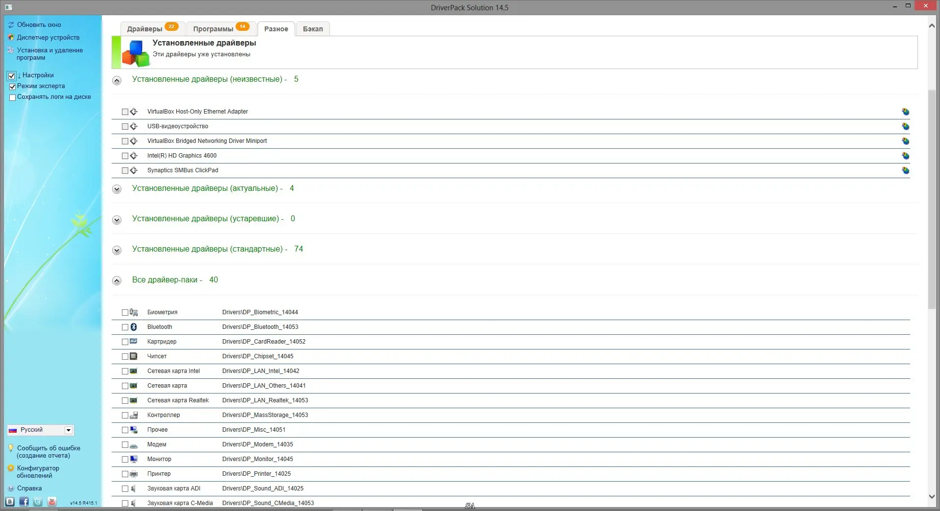 Версия программы: 14.5 R415.1 / 14.05.3. В работе применяются проверенные драйвер-паки, включающие драйверы различных устройств и производителей. Регулярное обновление через сайт гарантирует актуальность базы. Программа полностью бесплатна и не требует дополнительных затрат или лицензий. Также возможна установка через торрент для более быстрой загрузки и раздачи в локальной сети.