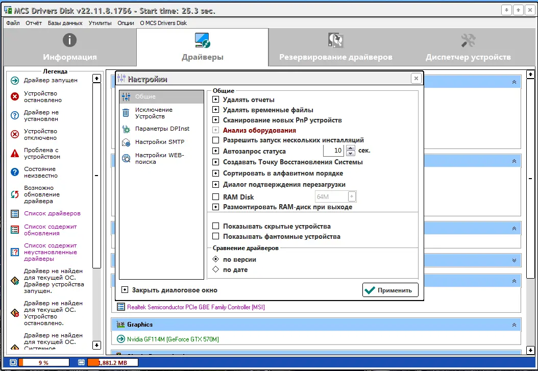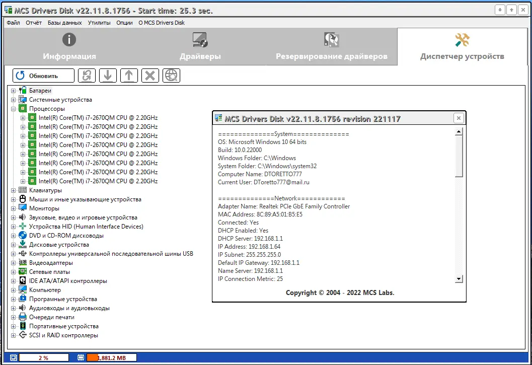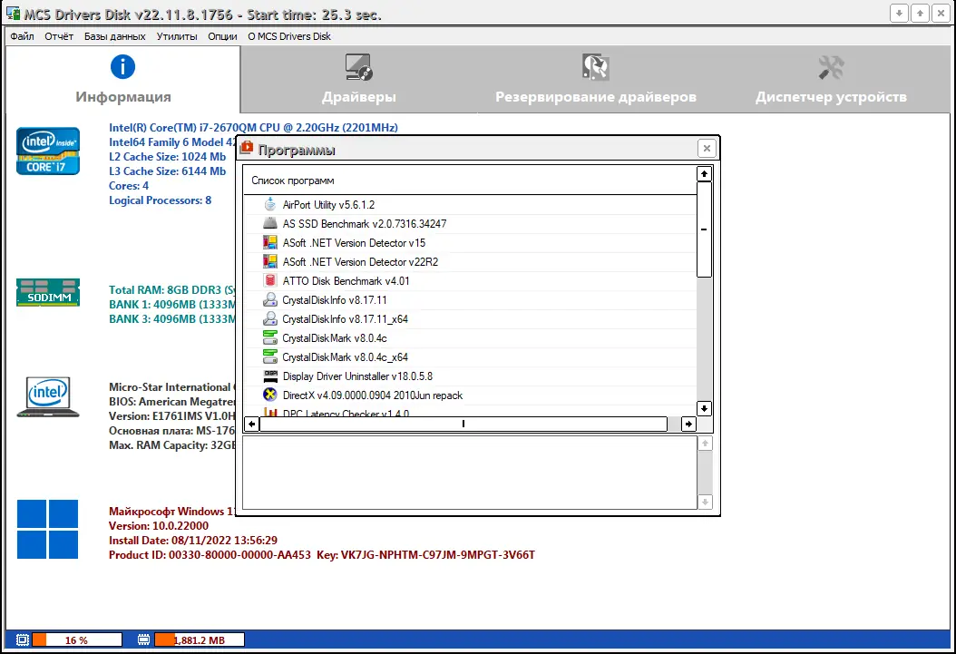 Данный диск представляет из себя сборник драйверов с возможностью установки необходимых драйверов в несколько кликов. Программа автоматически определяет, какие драйверы требуются для конкретного компьютера, работает со стандартными инсталляторами и распакованными файлами драйверов. В отличие от многих аналогов, MCS Drivers Disk обеспечивает быструю и надежную установку поддерживаемых устройств — чипсетов, видео-, аудио-, сетевых и контроллеров HDD, а также различных периферийных устройств и интерфейсов.