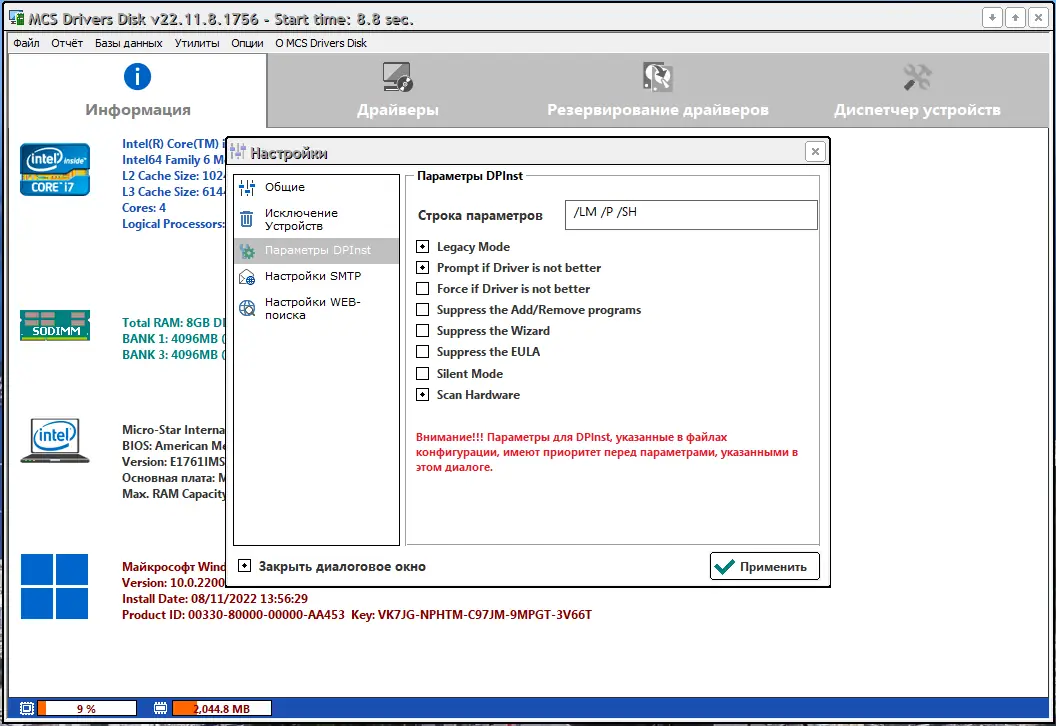 Программа MCS Drivers Disk — универсальный сборник драйверов, предназначенный для быстрого и удобного обновления или восстановления драйверной базы на компьютерах с различными версиями Windows. Реализует автоматическое определение необходимых драйверов и их установку в несколько кликов, что значительно сокращает время и усилия пользователя при настройке системы.