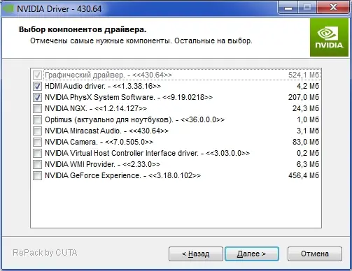 - Возможность выбора компонентов драйвера, исключая развёрнутую телеметрию и автоматические обновления.