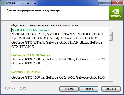- Обеспечивает поддержку широкого диапазона видеокарт Nvidia.