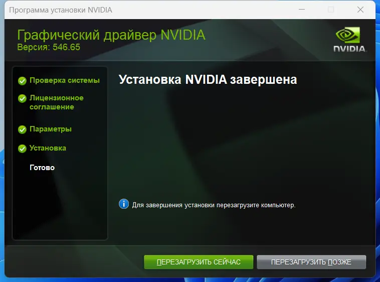 - После завершения установки рекомендуется перезагрузить компьютер, чтобы изменения вступили в силу.