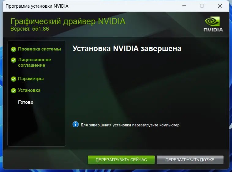 - После завершения процесса рекомендуется перезагрузить систему для правильной активации драйверов