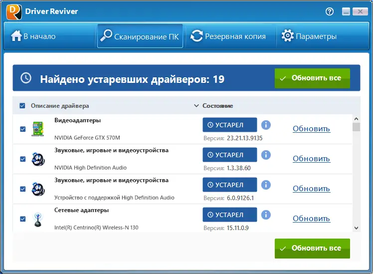 - Автоматическое быстрое сканирование системы и обновление драйверов за считанные минуты
