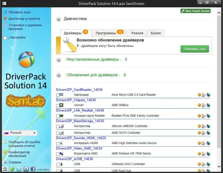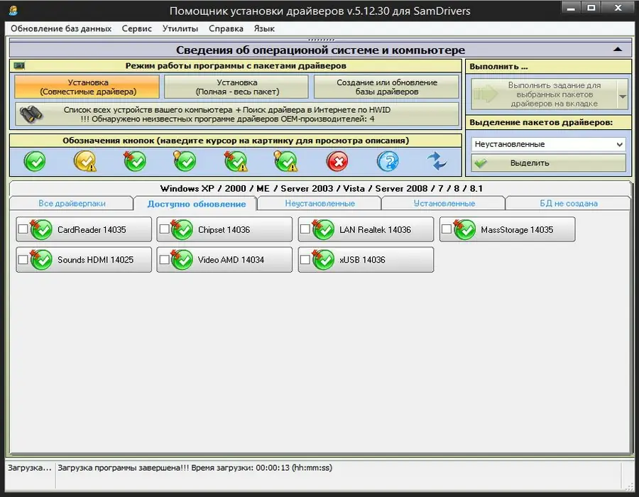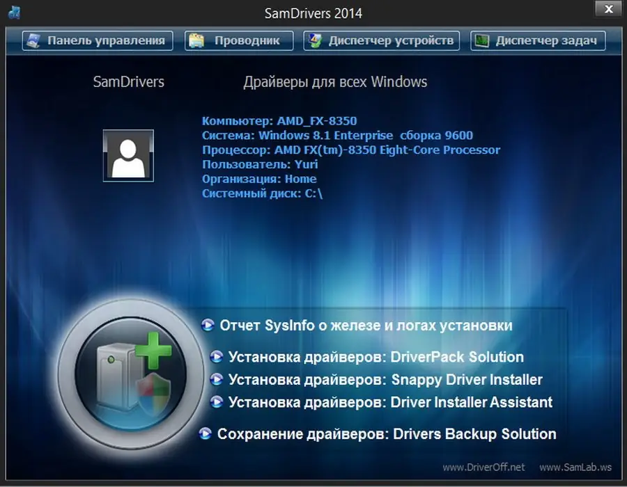 Для корректной работы сборника SamDrivers требуются стандартные системные ресурсы, подходящие под современные версии Windows.