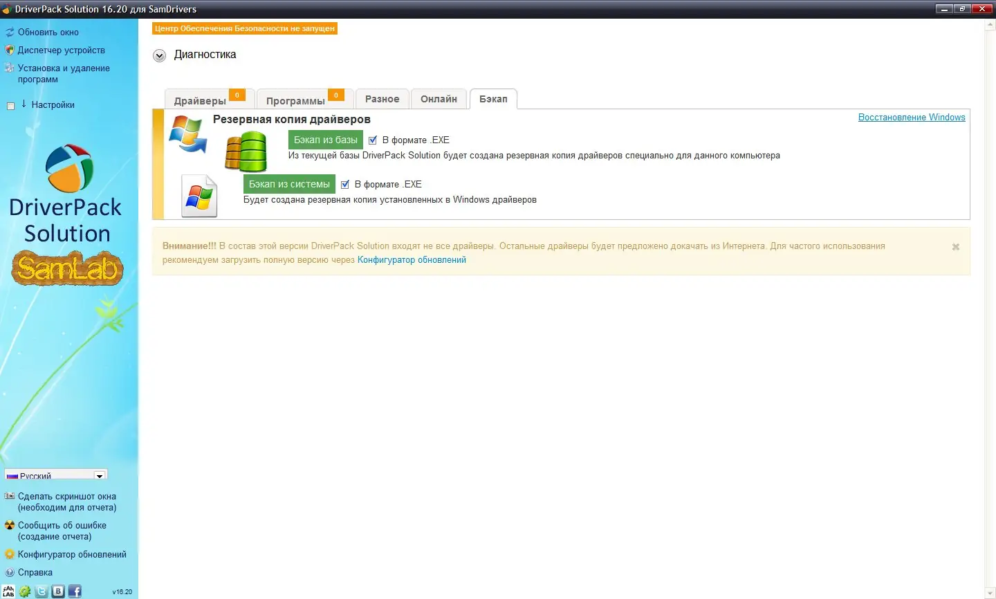 - Отсутствие встроенного инструмента для обновления драйверов для других устройств