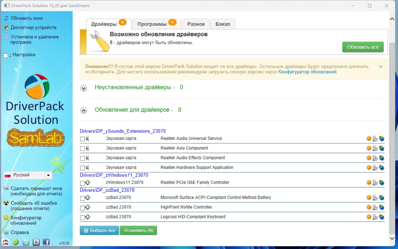 Перед началом установки рекомендуется создать резервную копию текущих драйверов. Ознакомьтесь с перечнем драйвер-паков, входящих в сборник, чтобы выбрать необходимые компоненты. После загрузки файла рекомендуется распаковать архив и следовать инструкциям по установке.