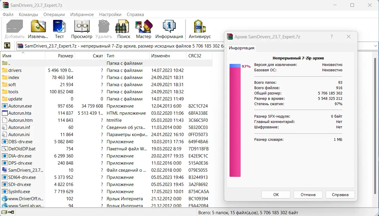 - Загрузите архив с файлом SamDrivers_23.7_Expert.7z, используя торрент или иные доступные способы