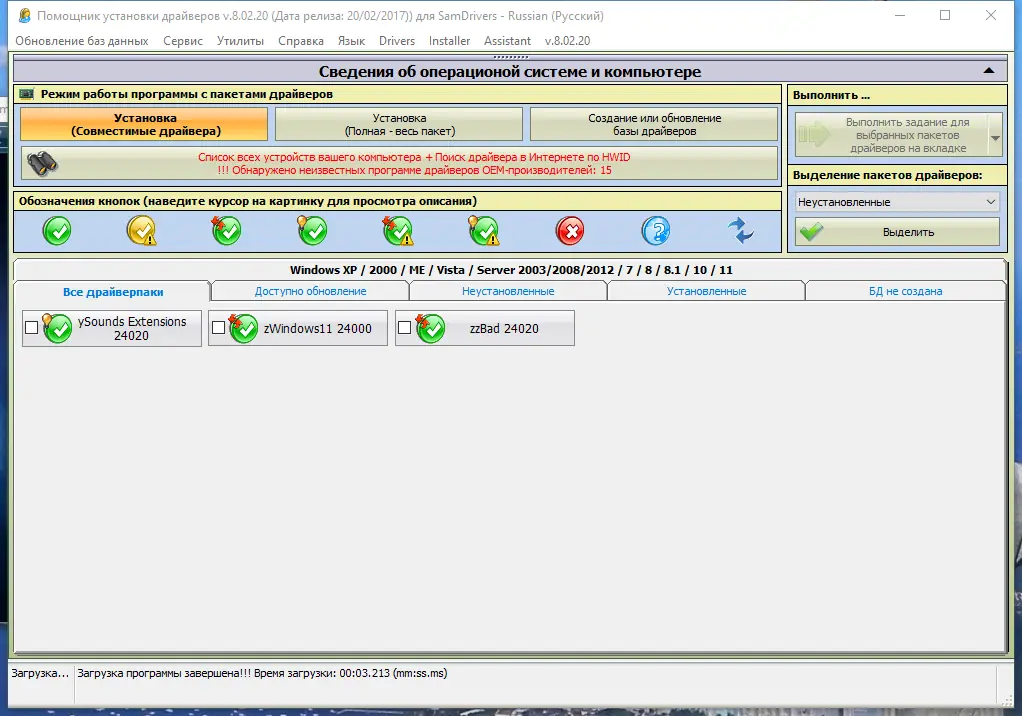 - Запустите программу-автоматчик для определения текущего оборудования.