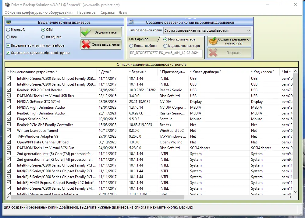 - Возможность бэкапа и последующего восстановления драйверов для системных безопасных обновлений.