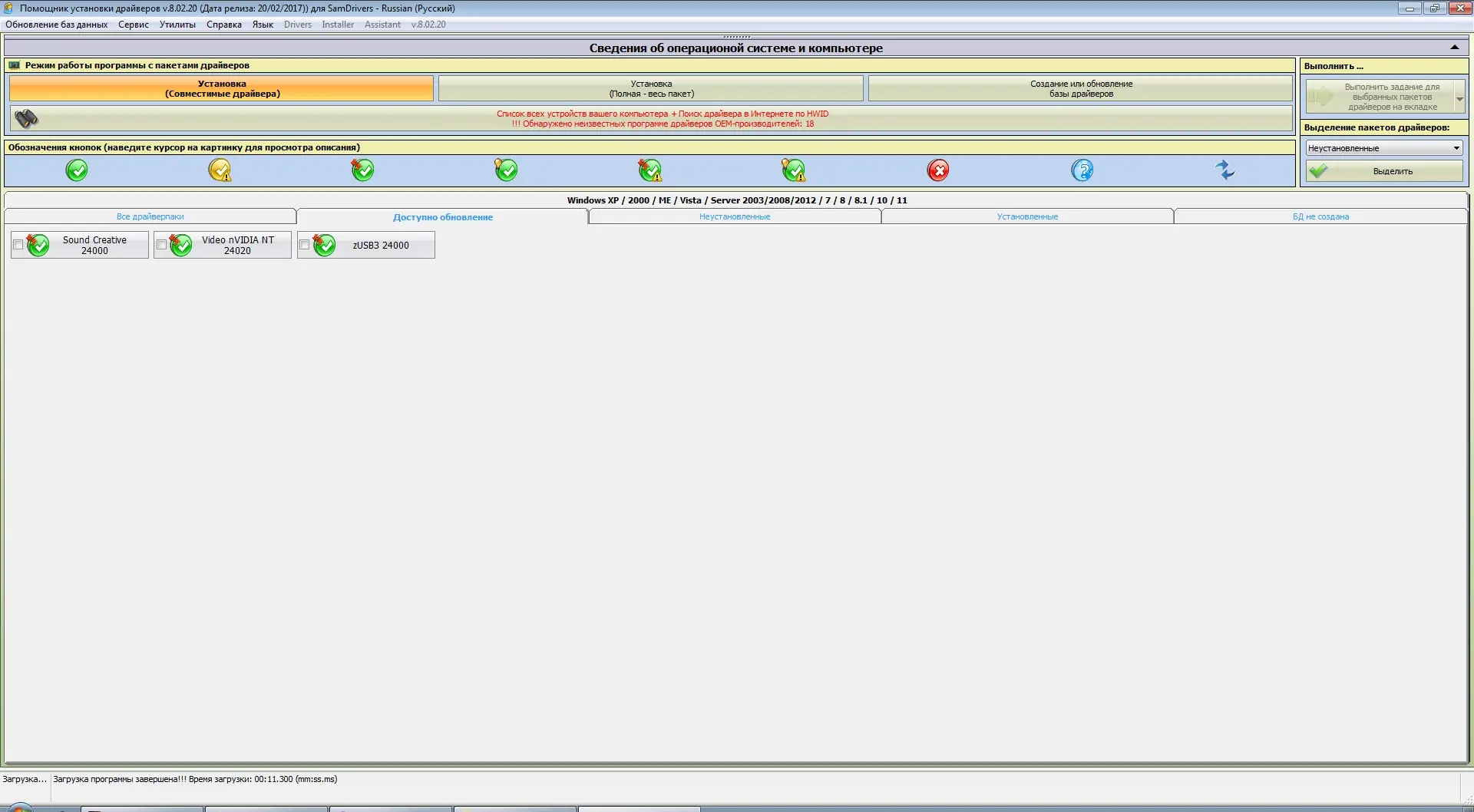 - Ожидайте завершения процесса, программа сама определит оборудование и выполнит установку драйверов