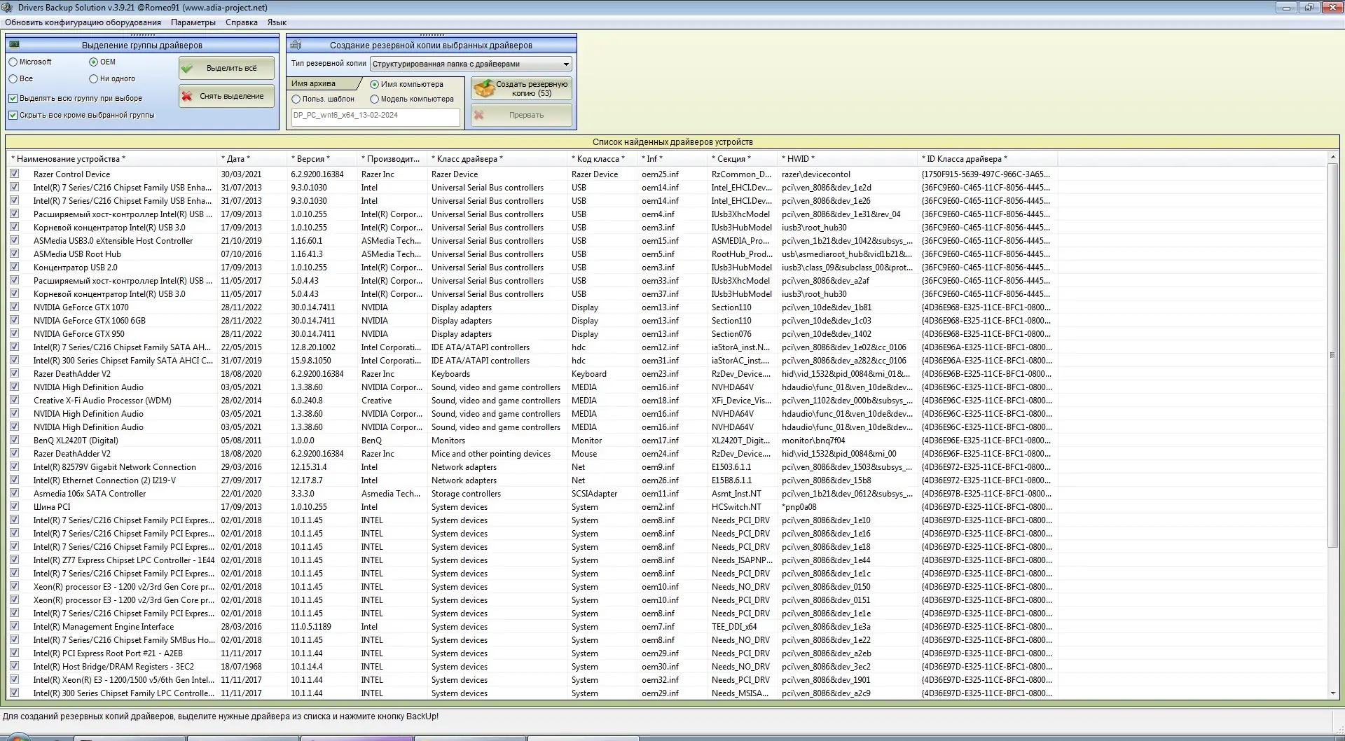 Обратите внимание: рекомендуется создавать резервную копию драйверов перед массовой установкой для устранения возможных ошибок