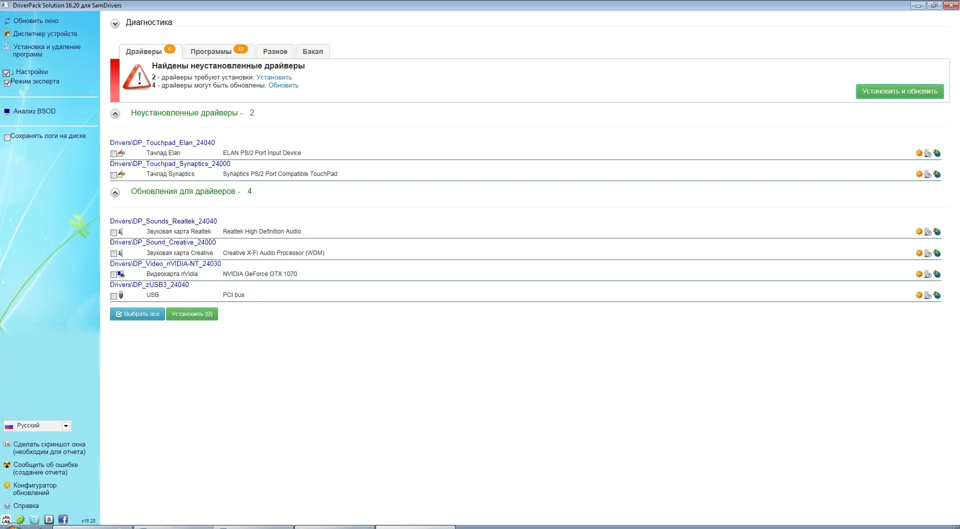 - После завершения установки запустить программу для автоматической диагностики и установки драйверов.