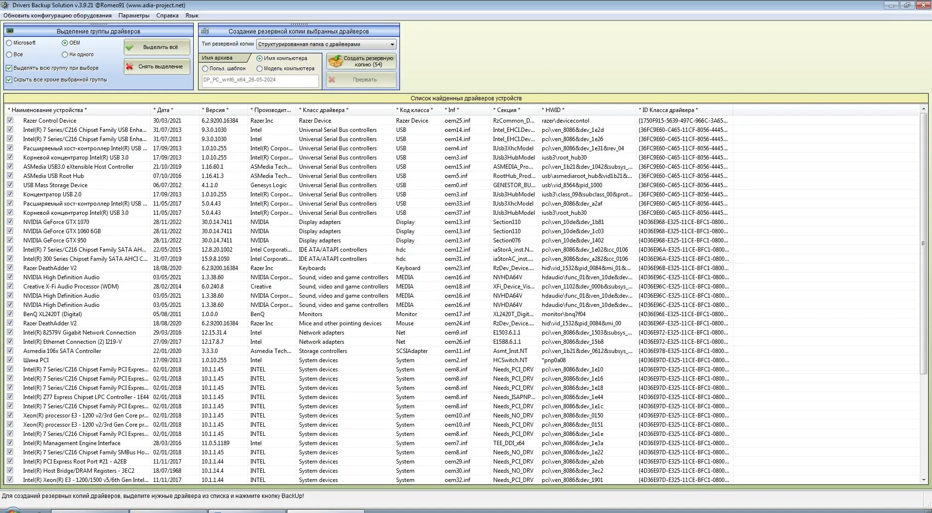 В сборник также включена утилита для бэкапа драйверов, что обеспечивает возможность их резервного копирования и восстановления. В целом, SamDrivers предлагает полностью готовое решение для автоматической установки драйверов, поддержки и обновления оборудования ПК и ноутбуков, а также включает инструменты для резервного копирования и восстановления драйверов.