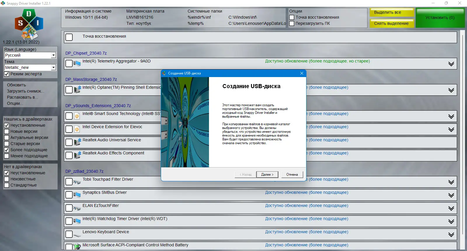 - Выбрать драйверпаки и установить их по мере необходимости.