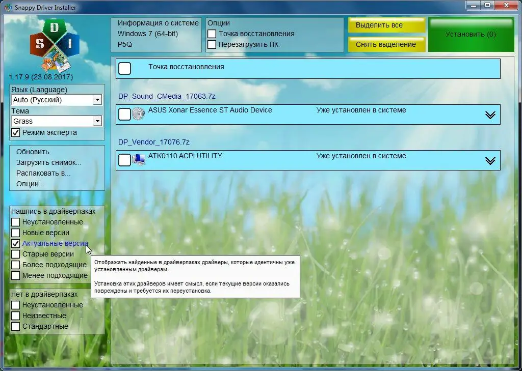 - При необходимости выбрать драйверпак и начать процесс обновления или установки драйверов.