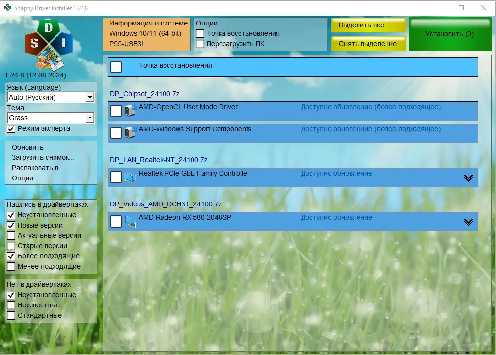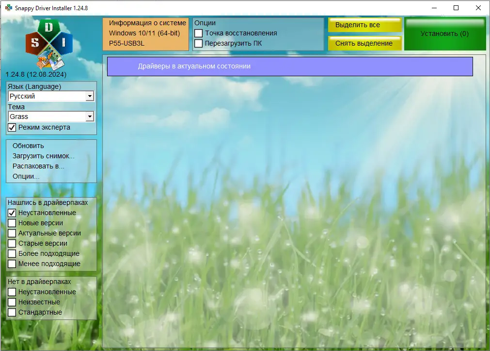 - При необходимости — настроить режим эксперта и выполнить обновление драйверпаков вручную.